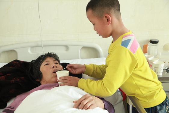丈夫去世这些年来,袁玉环省吃俭用,长子也是常年在安庆租房打工挣钱,希望能尽快偿还因治病而欠下的巨额债务。经过近十年的劳作,辛辛苦苦攒下的钱终于基本上还清了压在肩上的沉重担子。母子二人以为能让小孙子过上稍微好一些的生活了,可是命运就是如此的不公,就在2013年,已经步入老年、58岁的袁玉环中风了。从此,她再也无法为家里劳作,甚至还将成为儿子的负担,袁玉环老人心里的苦水无处倾诉,日子越过越艰难。