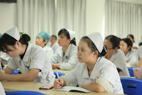 讲座中宋医师从心源性休克诊断与救治、电除颤的临床应用、心肺复苏等几个方面做了详细的讲解。在讲述的过程中,在场的医护人员不仅认真听讲、积极的做笔记,还就自身的健康问题向宋医师寻求解答,现场互动气氛十分活跃。宋医师生动的讲说,受到在场人员的一致好评。