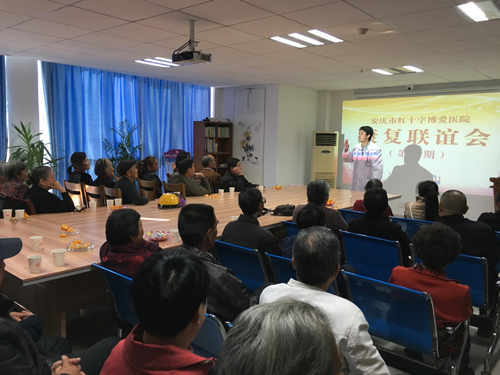 2015年11月2日下午,在安庆市红十字博爱医院二楼会议室举办了第三期康复联谊会。当日,40多名曾在博爱医院治疗康复的患者及医护人员参加了此次联谊会,每个人脸上都洋溢着灿烂的笑容。