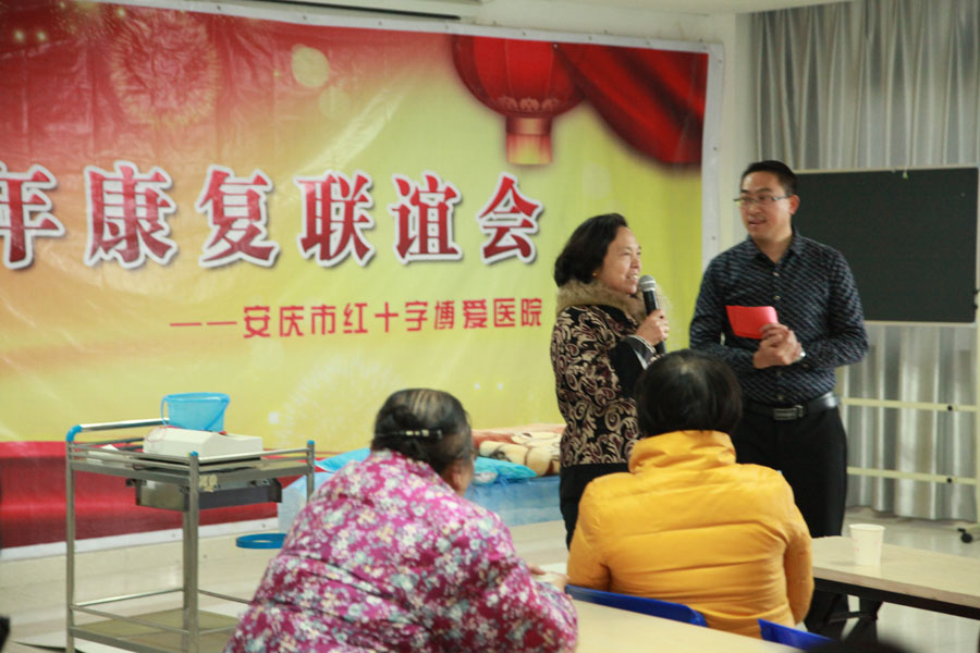 2015年12月29日,安庆市红十字博爱医院跨年康复联谊会在三楼学术报告厅隆重召开。博爱医院医护代表及70余名康复病友参加了联谊会。