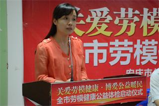 劳模代表也慷慨激昂的发表讲话,她表示感谢市领导的关心,感谢安庆市红十字博爱医院为我们免费体检…………