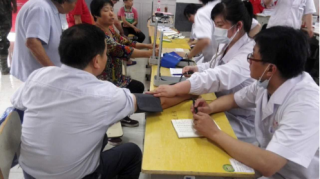 图为安庆市博爱医院医疗小分队为灾民做各项检查