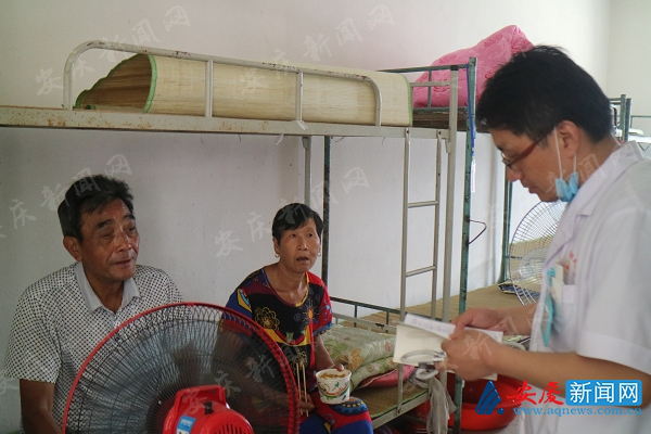 在躺椅上凑合了一夜的谭玉林,一早又打起精神迎接着前来就诊的病人。7月12日上午,在桐城市天城中学安置点,安庆晚报记者见到了安庆市红十字博爱医院志愿者医疗队的队长谭玉林和其他4名队员。作为全省唯一一支志愿者医疗队,也是我市唯一一支长期驻点的医疗队伍,安庆市红十字博爱医院志愿者医疗队的这5名队员,已经在此坚守了10天。