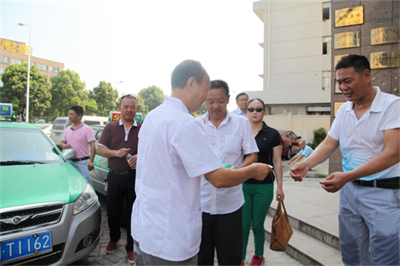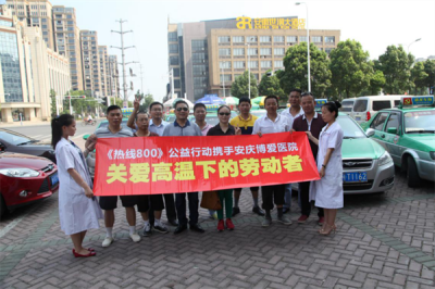 7月31日,《热线800》公益行动携手安庆市红十字博爱医院举办的“关爱高温下的劳动者”系列公益活动仍如火如荼地进行,安庆市红十字博爱医院免费为道龙车队的出租车司机送上冰镇绿豆汤、西瓜和体检卡等清凉物资。为烈日当空坚守岗位的出租车司机们送上了丝丝凉意,向劳动者致敬。
