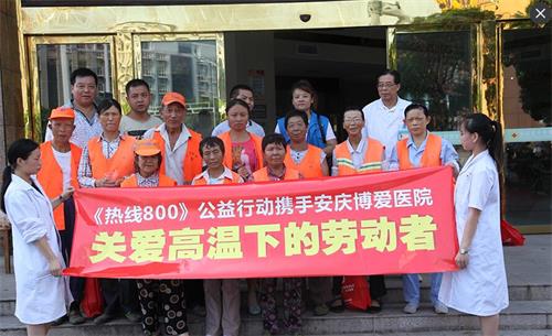 同一天上午10:20,安庆市红十字博爱医院爱心小分队来到了湖心路,看望慰问“修路工人”。当一口冰镇的绿豆汤下肚,工人们纷纷表示,好清凉啊!工人代表握着潮家宽书记的手,表示:“炎炎夏日,安庆市红十字博爱医院的医生不仅耐心细致地讲解中暑症状和急救方法,还带来了爱心物资,我们确实感受到了清凉。这样的公益活动做到了我们心坎上去了。”