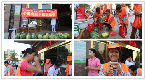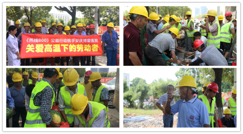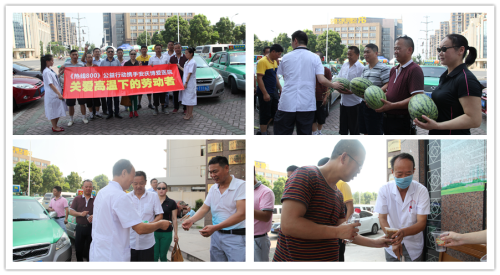 七月流火,酷暑难耐,安庆市红十字博爱医院情牵公益,开展“关爱高温下的劳动者”系列公益活动,相继向天意物业的“环卫工人”、湖心路的“修路工人”、道龙车队“出租车司机”、安庆武警支队“秦潭湖消防中队官兵”送上绿豆汤、西瓜、防暑药品等清凉物资,以沁人心扉的清凉,为劳动者带去了浓浓关爱。