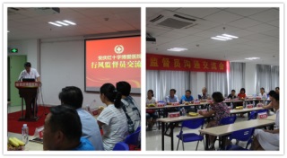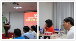 8月26日下午三点半,安庆红十字博爱医院首场行风监督员沟通交流会在医院三楼学术报告厅如期召开。来自各社区委12名代表以及安庆红十字博爱医院副院长王学明等领导出席并参加了会议。会上,社区委代表认真细致地了解了医院的整体情况,特别对医院医德医风、医疗质量和服务进行了深入考察。12名社区委代表接受医院聘任为安庆红十字博爱医院首批行风监督员,他们将成为监督医院一举一动的那雪亮的十二双“眼睛”,为医德医风把关,为医疗质量和服务尽责。