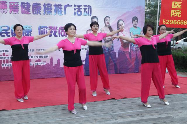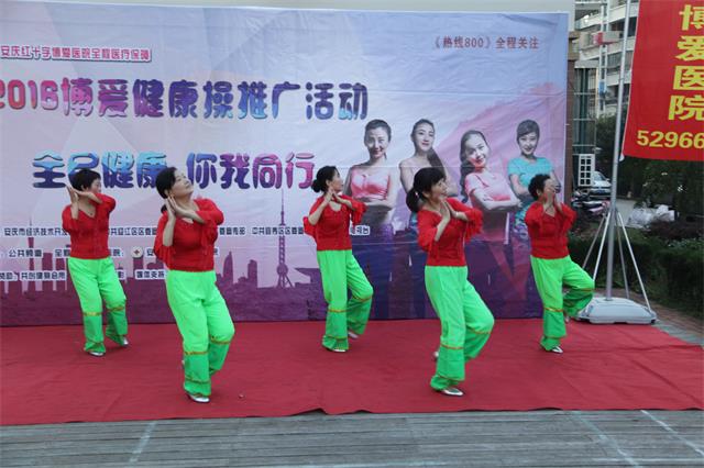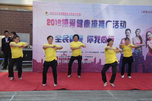 11月3日下午,安庆市技术开发区管委会、安庆市广播电视台主办,安庆红十字博爱医院承办的“全民健康,你我同行”2016博爱健康操推广活动在曙光社区千和花园顺利举行。在活动现场,30名来自曙光社区居民五人一组,和着优美的音乐,踏着整齐的节拍,为现场观众展示了博爱健康操和广场舞,为健康加“骨”劲。