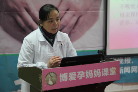 孕妈妈课堂上除了精彩的猜儿歌游戏,还有江主任向到场的孕妈们介绍了产后母乳喂养的好处,就如何冲泡配方奶粉、新生儿洗澡的注意事项以及新生儿皮肤护理等问题做了详细讲解,深入浅出的讲解方式得到了现场孕妈妈们的一片掌声。