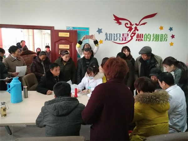 ▲图为白泽湖乡月形社区义诊活动现场排起了长队