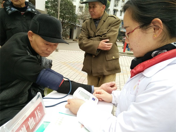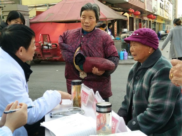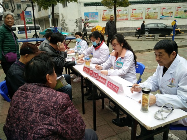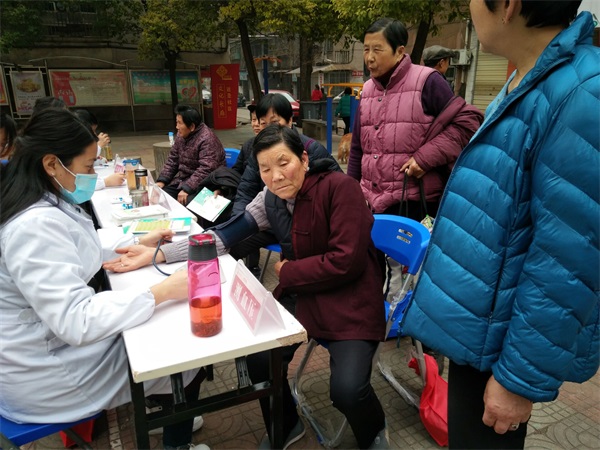 当安庆红十字博爱医院的展示牌在各社区一字排开,前来求医问诊的群众就络绎不绝,在博爱医护的指导下,人们排起了长队耐心等候,有的甚至早早挽起衣袖等待测血压,一个接一个。同时,现场还发放了《健康之道》、《耳鼻喉保健手册》等健康科普材料,为居民传授简单实用的养生保健方法,提高居民保健意识。