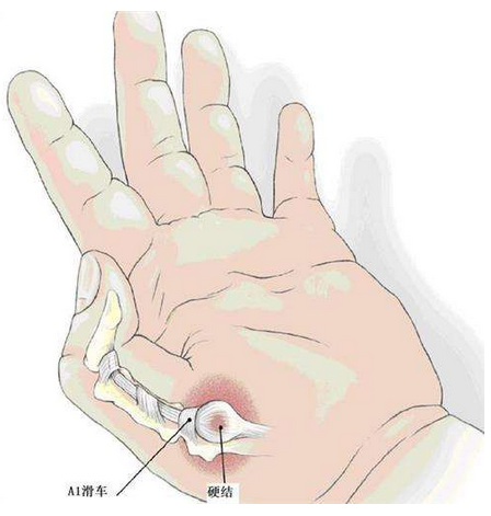 一些需要长期重复劳损关节的职业如打字员、键盘手、器乐演奏家、货物搬运或需要长时间电脑操作的行业等,都会引发或加重此病。常见患处有手腕、手指的疼痛。通常起床后拇指疼痛及活动受限明显,活动后有时可缓解。拇指可出现关节肿胀,弹响。病情加重是拇指不能主动屈曲或伸直,更严重时,甚至拇指不能被动屈曲或伸直,出现固定。