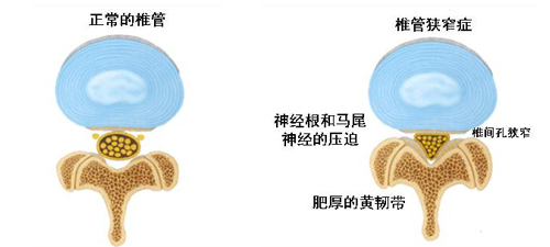 黄韧带肥厚的最终结果是造成椎管狭窄,特别是侧隐窝引起始部的狭窄,导致马尾神经受压及神经根压迫症状。退变肥厚的黄韧带弹力纤维减少,胶原纤维代偿性增多,纤维排列紊乱,并出现较明显的变性及钙化;而胶原含量显著增高,是黄韧带肥厚的主要原因。